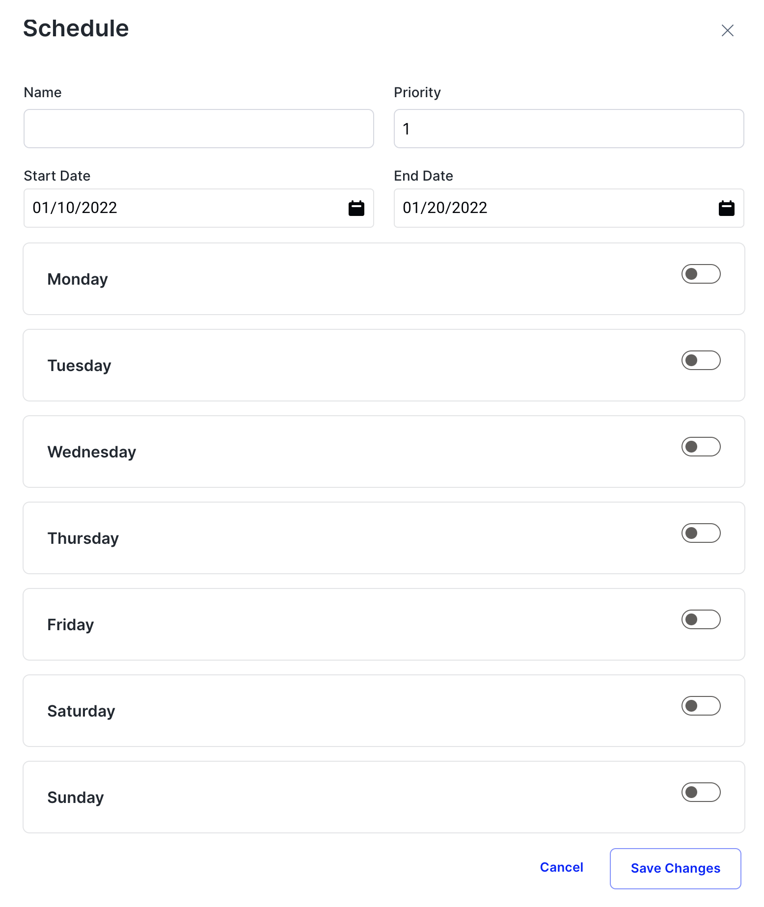 Once you’ve successfully added all the days to your schedule click Save Changes to push the schedule live.